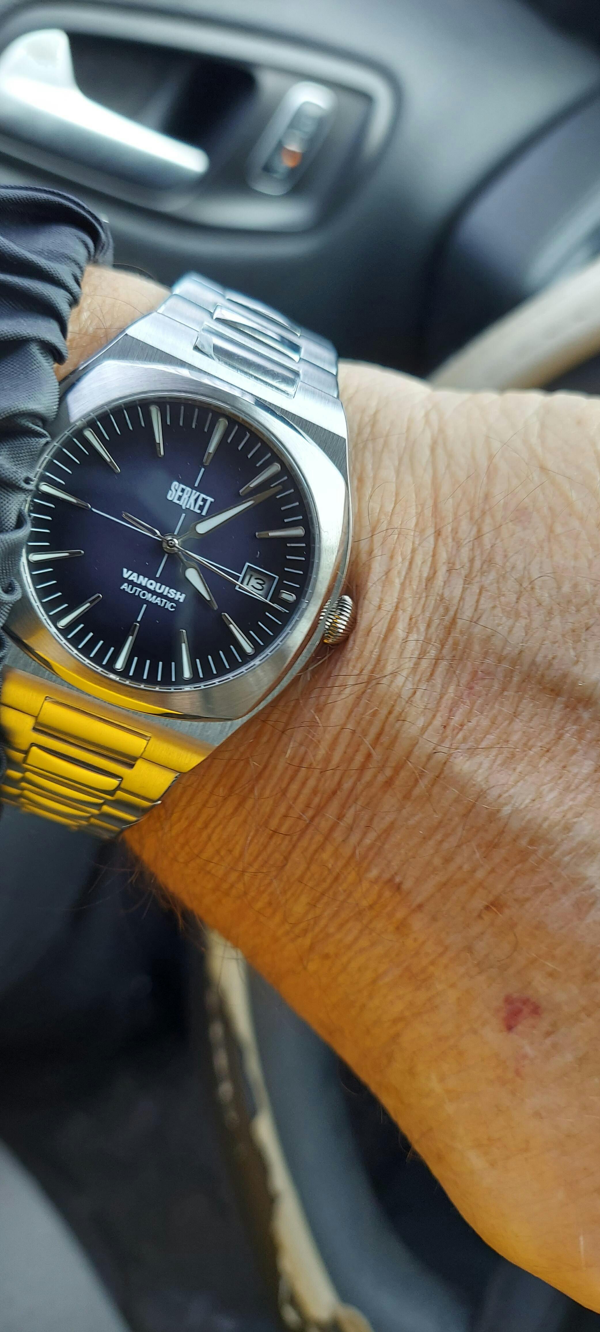 The Vanquish Automatic is built for those who never settle — a perfect fusion of modern engineering and timeless design. Crafted from 316L stainless steel with a brushed and polished finish, it delivers a powerful wrist presence that feels as good as it looks.
